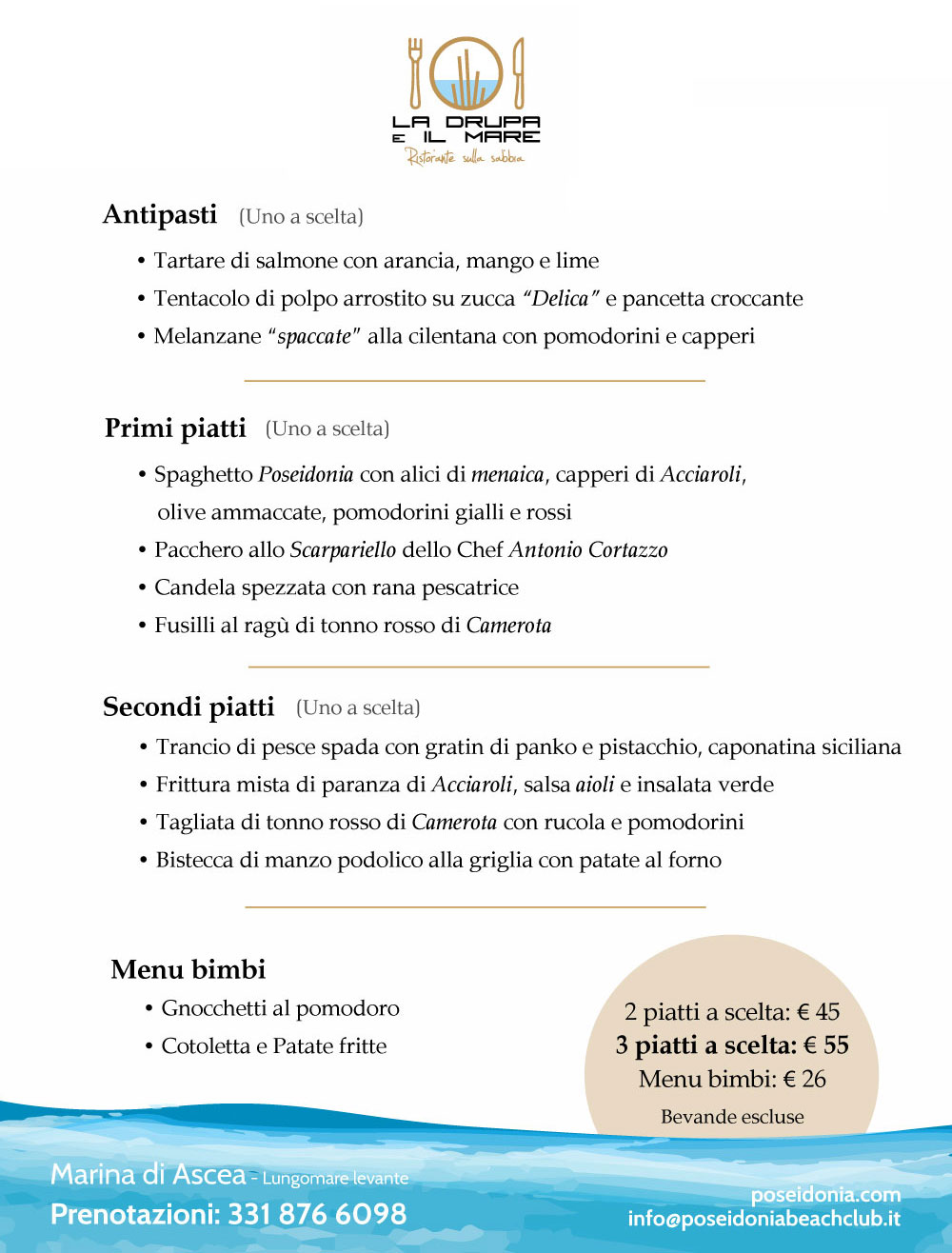 Menu di Ferragosto 2024 al Poseidonia Beach Club di Ascea